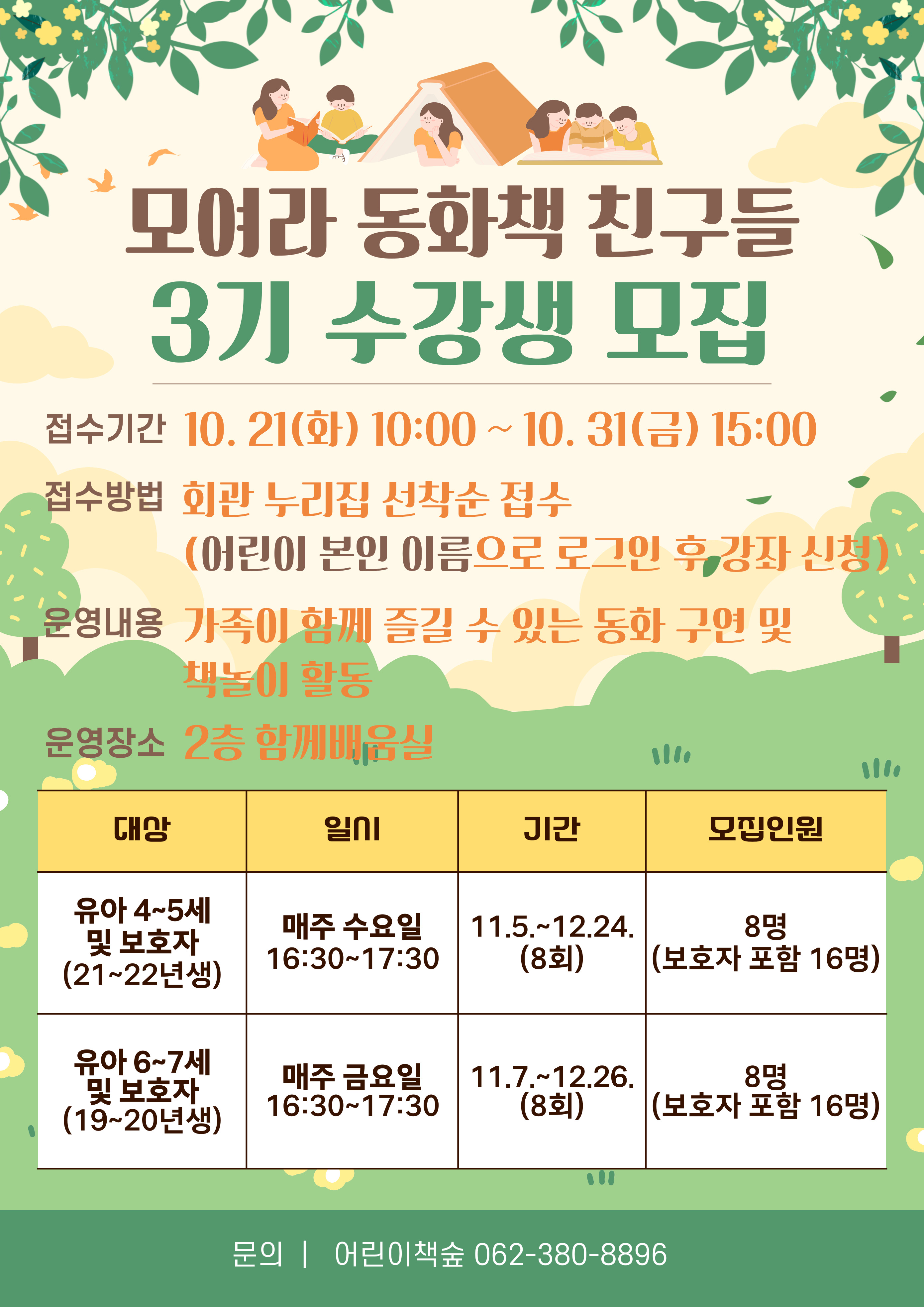 2025년도 모여라 동화책 친구들 [3기] 수강생을 모집합니다.