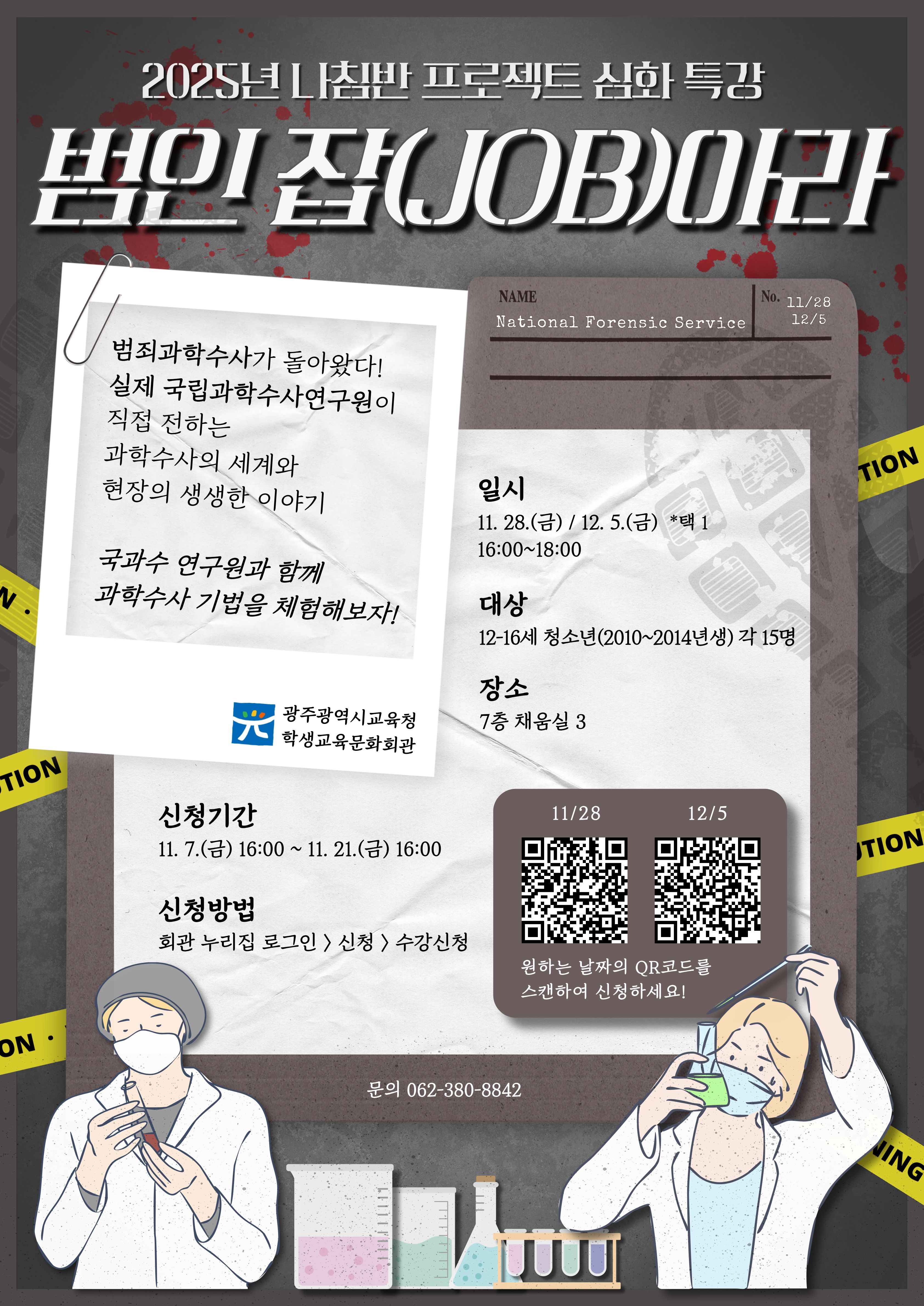 | [11/28(금)] 2025년 범인 잡(JOB)아라: 국과수 체험 신청준비 |